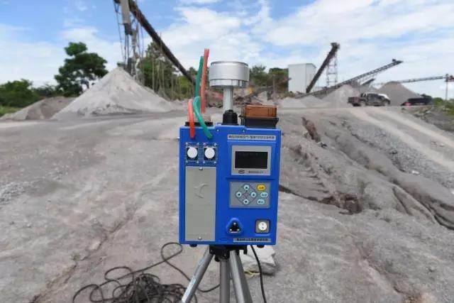 在大坪采石場(chǎng)生產(chǎn)現(xiàn)場(chǎng),我們看到該生產(chǎn)線采取了多項(xiàng)環(huán)保措施,例如皮帶轉(zhuǎn)載點(diǎn)配備自動(dòng)噴霧裝置,采石場(chǎng)內(nèi)安裝了2臺(tái)智能空氣采樣器監(jiān)測(cè)粉塵排放量,灑水車不間斷作業(yè),整體生產(chǎn)環(huán)境較為環(huán)保。