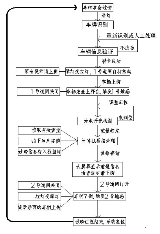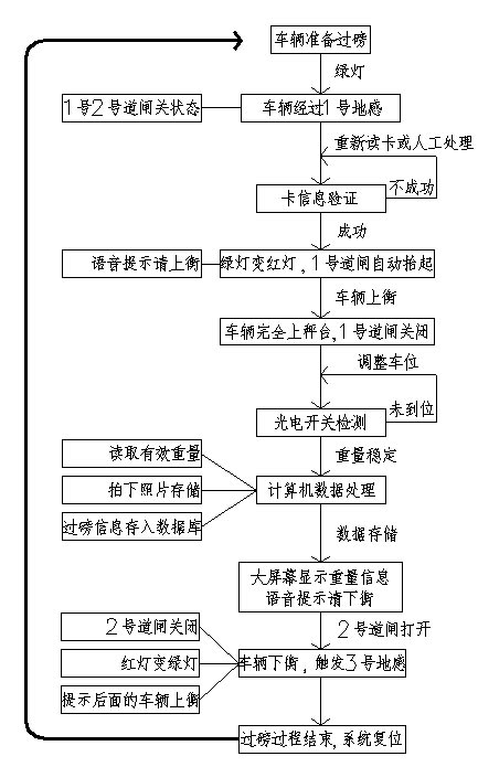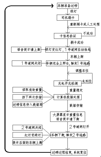 RFID卡自動(dòng)稱重系統(tǒng)自動(dòng)識(shí)別車輛車牌號(hào)碼,方便快捷。要求:場(chǎng)內(nèi)對(duì)車輛管理較嚴(yán)格,車牌的完整度和清潔度。過(guò)磅原理流程如下: