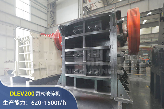 DLEV200顎式破碎機進料粒度在1250mm左右,出料大小在135-350mm,配備400kw電機,產(chǎn)量可達時產(chǎn)1500噸。