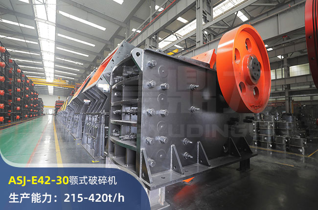 ASJ-E42-30顎式破碎機(jī)進(jìn)料口尺寸1070×760mm,進(jìn)料粒度≤500mm,出料大小≤100mm,電機(jī)功率110kw,時產(chǎn)量在420左右。