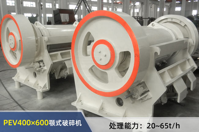 PEV400×600顎式破碎機時產(chǎn)20-95噸,電機功率為30或37千瓦,進料粒度要求<340mm,出料范圍40-80mm,重量是7噸,外形長2500mm,寬1750mm,高1950mm。