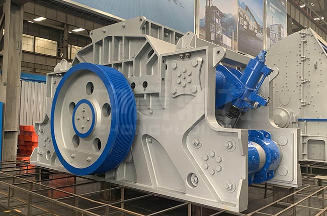 DLPCZ2125重錘式破碎機(一破成型設備):這臺設備可以實現(xiàn)一破成型,成品料粒度可以調(diào)節(jié),2125這個型號的重錘破時產(chǎn)量在2000-3000噸左右,進料粒度1200mm,適用于解決中等硬度的物料,硬度太大對錘頭磨損比較嚴重。