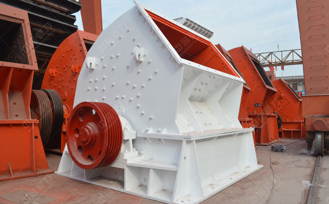 處理物料型號(hào)為BP55的粗碎反擊破碎機(jī),進(jìn)料粒度不能過(guò)1400mm,成品料粒徑在150mm可控,其每小時(shí)生產(chǎn)能力為170-110噸,采用的是兩臺(tái)(250-375)kw的電機(jī),機(jī)器總重72噸。