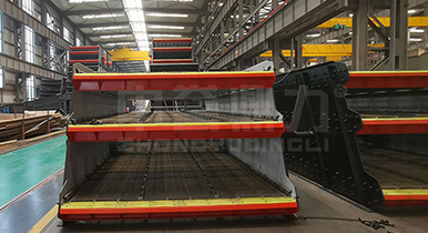 篩箱通過振動電機(jī)做相反方向自同步旋轉(zhuǎn),使支承在激振器是的整個篩機(jī)做直線振動,物料從入料口進(jìn)入篩箱,迅速前進(jìn)、松散、透篩、完成篩分作業(yè)。