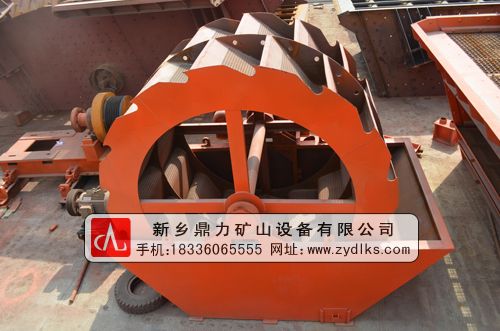 輪斗式洗砂機主要結構包括洗砂池、輪斗、電機、下料口等組成,輪斗洗砂機工作的時候電機通過三角帶、減速機、齒輪減速后帶動葉輪緩慢轉動,砂石由給料槽進入洗砂池中,在葉輪的帶動下翻滾,并互相研磨,除去覆蓋砂石表面的雜質,同時破壞包覆砂粒的水汽層,以利于脫水。同時加水,形成較強大的水流,及時將雜質及比重小的異物帶走,并從出砂口排出,從而完成清洗作用。干凈的砂石由葉片帶走, 后砂石從旋轉的葉輪倒入出料槽,完成砂石的清洗作用。