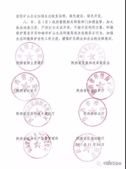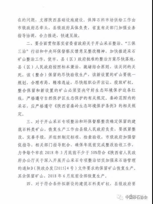 此前,即2017年11月24日,陜西省土資源廳、陜西省發(fā)展和改革委員會、陜西省公安廳、陜西省公安廳、陜西省環(huán)境保護(hù)廳、陜西省住房與城鄉(xiāng)建設(shè)廳、陜西省林業(yè)廳、陜西省安生產(chǎn)監(jiān)督管理局和陜西省交通運(yùn)輸廳八部門聯(lián)和發(fā)布《關(guān)于加快推進(jìn)采石礦山整治 保障石料市場供給的通知》。為加快建筑石料礦山整治步伐,解決石料市場供應(yīng)嚴(yán)重不足的突出問題,保障石料市場正常供給,助力陜西經(jīng)濟(jì)發(fā)展。要求: