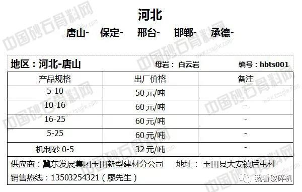 湖北地區(qū):黃石砂石價格下調2元/噸。