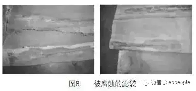 除了酸、堿腐蝕外,有機(jī)溶劑等對(duì)濾袋的腐蝕也是不容忽視的,如垃圾焚燒尾氣中某些微含量物質(zhì)對(duì)濾袋的損害,目前還無(wú)法對(duì)其作出合理的解釋?zhuān)驗(yàn)檫@些物質(zhì)的含量實(shí)在是太低了,低到甚至無(wú)法檢測(cè)到,但它們是實(shí)實(shí)在在地存在于尾氣中,造成的危害是大的。如溴蒸氣(Br2)雖然其含量微,但對(duì)濾袋造成的損害是致命的。