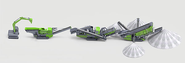 該生產(chǎn)系統(tǒng)主要包含破碎、篩選分級環(huán)節(jié),常見的機械含有:移動鄂式破碎站、移動圓錐式破碎站、移動反擊式破碎站、移動錘式破碎站、流動破碎機(斜篩)、移動程度篩選分級站,生產(chǎn)能力從80噸單位時間至500噸單位時間,均能符合。