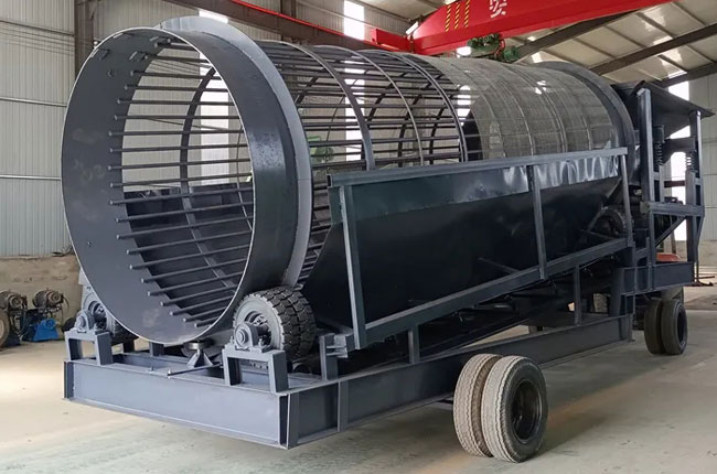 移動(dòng)滾筒篩石機(jī)是將傳統(tǒng)滾筒篩石機(jī)安置再有輪子的機(jī)架上,可以自由移動(dòng)、轉(zhuǎn)場(chǎng),在市面上又叫移動(dòng)滾筒篩分機(jī)、移動(dòng)式滾筒篩、籠式滾筒篩等。