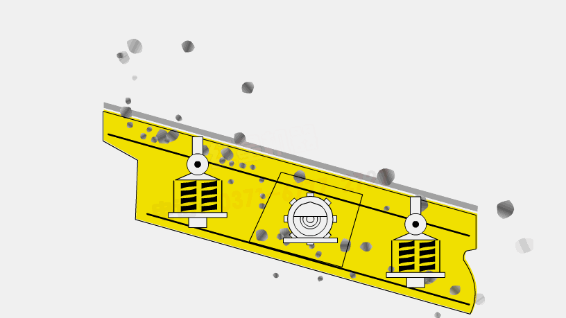 振動篩的運動是由電動機通過三角帶驅(qū)動具有偏心質(zhì)量的激振器,從而使篩機做周期性的不對稱往復機械振動,使篩面上的物料層松散并離開篩面被拋起,使細級物料能透過料層下落,通過篩孔分離,并將卡在篩孔中的物料振出,細級物料向下部移動,通過篩網(wǎng)孔徑大小限制,實現(xiàn)篩選作業(yè)。