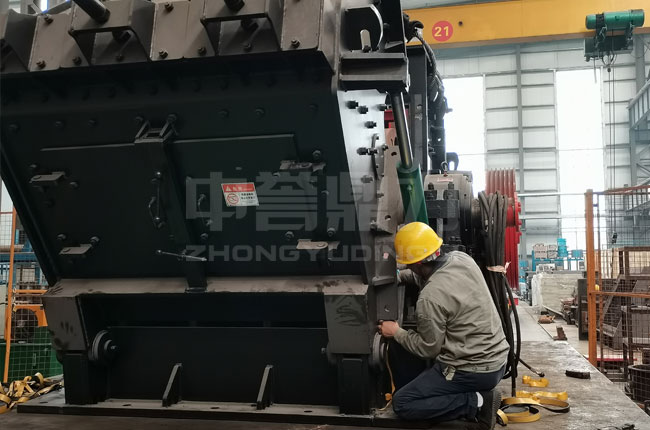 中譽鼎力雙腔型硬巖破碎機,機殼采用雙腔對稱設(shè)計,內(nèi)設(shè)兩套對稱設(shè)計的加厚反擊襯板,采用兩路錘頭設(shè)計,錘頭合金加長,轉(zhuǎn)子可以360°正反旋轉(zhuǎn),不用人工翻轉(zhuǎn)錘頭,錘頭得以使用,停機調(diào)整及錘頭更換成本。