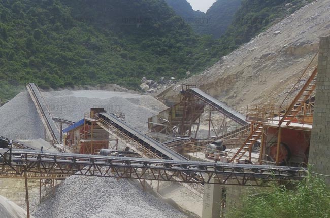 頭破采用錘式破碎機(jī),破碎石料直接通過(guò)篩機(jī)篩分出部分成品料