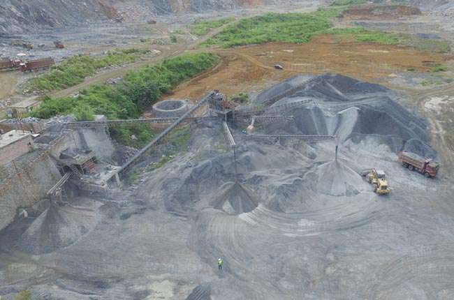 該生產(chǎn)線投產(chǎn)時(shí)間是2013年6月,主要生產(chǎn)0—30mm混合料、10—20、10—30mm的石子、瓜米石、石粉等石料,日產(chǎn)量可達(dá)3000噸,成品石料應(yīng)用于水泥廠及混凝土攪拌站。