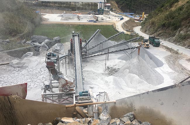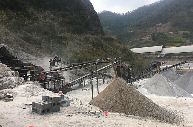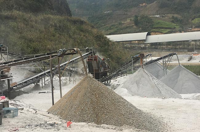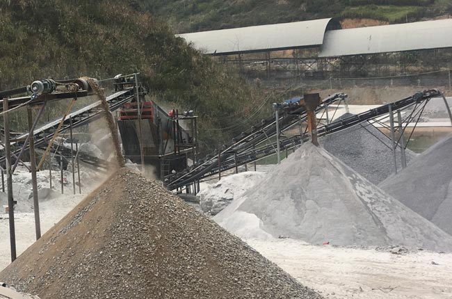 廣西南寧時(shí)產(chǎn)200噸石子生產(chǎn)線選用除土型給料機(jī)、一臺(tái)錘式破碎機(jī)、一臺(tái)4層篩網(wǎng)的振動(dòng)篩,生產(chǎn)線生產(chǎn)4種不同規(guī)格的石料。