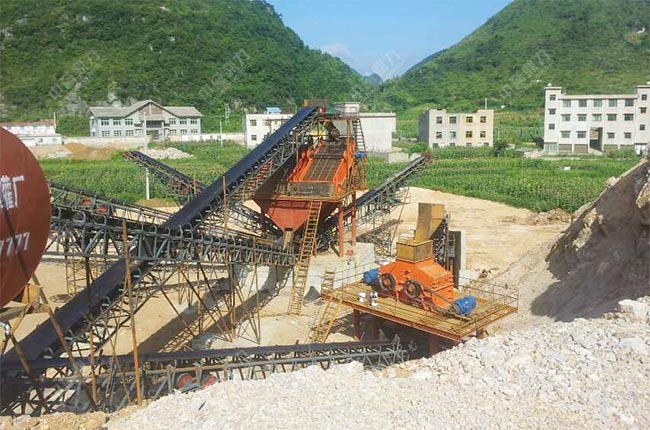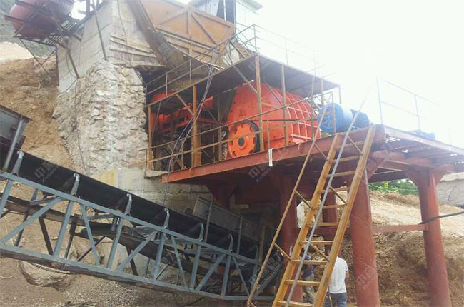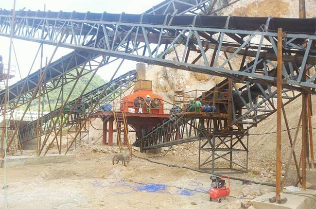 因為原料是硬度不太高的山石,所以選用了重型錘式破碎機當(dāng)主破設(shè)備,可以將大塊的山石原料破碎成小塊石頭,便于進(jìn)入制砂機內(nèi)進(jìn)行制砂生產(chǎn),簡化了生產(chǎn)工藝流程,節(jié)省設(shè)備方面的投入成本。