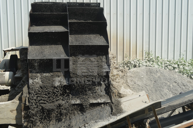 這條300噸的水洗砂生產(chǎn)線,是將破碎后的碎石料經(jīng)過ZSJ1416雙轉(zhuǎn)子制砂機進行細(xì)碎制砂,后由2臺DLXS3016輪式洗砂機進行洗沙處理。