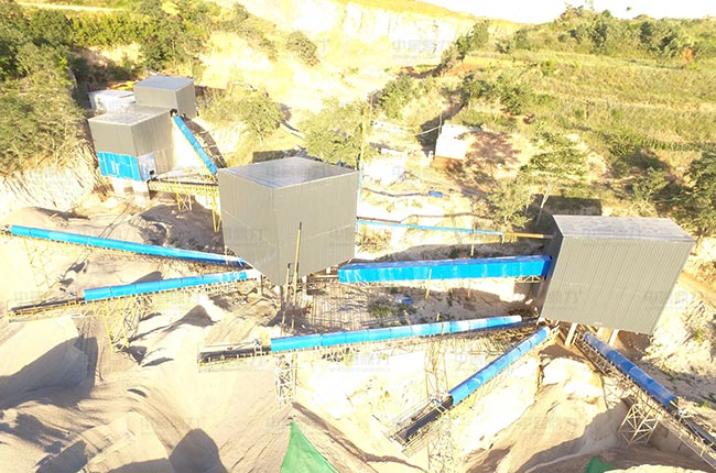 “給料、破碎、篩分”在封閉車間內(nèi),皮帶機也采用封閉設(shè)計,不論破碎生產(chǎn)還是石料輸送都控制粉塵污染,實現(xiàn)綠色生產(chǎn)。