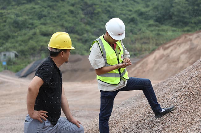 2017年8月鼎力售后團(tuán)隊(duì)來(lái)到張家界何家坪采石場(chǎng),對(duì)成品品質(zhì)進(jìn)行查驗(yàn)