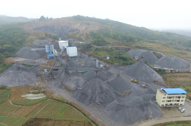 依照項目地勢高低設(shè)計,整個破碎到成品料流程呈階梯狀,原料儲存空間大,銷售方便。