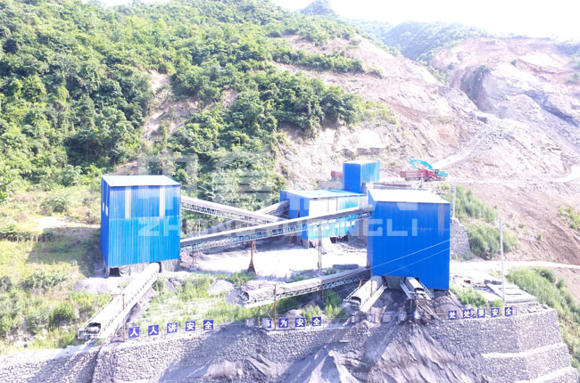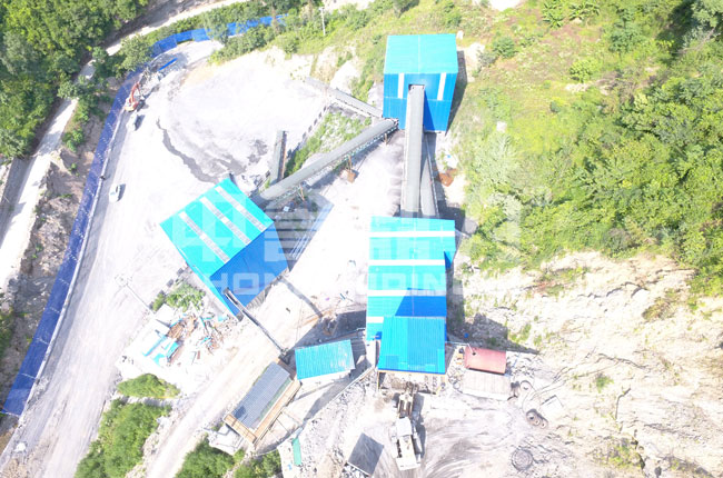 該項目是17年7月投入生產的,主要加工石灰石石料,生產各種規(guī)格的碎石物料。此條生產線采用鋼結構封閉設計,現場揚塵較少,噪音小。