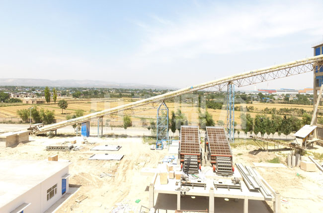 這條生產(chǎn)線是較為常見的設(shè)備配置,生產(chǎn)線生產(chǎn)工藝簡單,采用1220錘式破碎機代替粗碎與中碎階段,實現(xiàn)一次破碎成型,生產(chǎn)出的石料級配合理,適合高速公路、混凝土攪拌站及重大基礎(chǔ)建設(shè)。