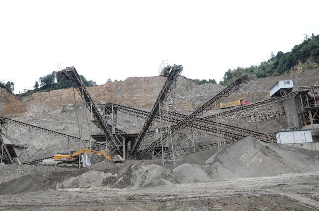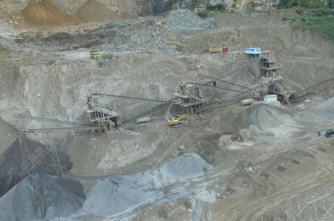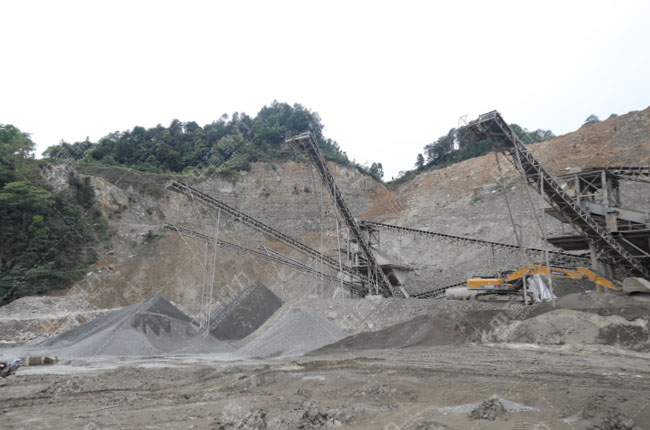 通過上面的案例現(xiàn)場圖可以知道,該項目利用了有力的地勢地形,采用階梯式設(shè)計,給料、破碎、篩分階梯式逐步完成,不僅占地面積小,還的節(jié)省了輸送機設(shè)備的投資,可謂是工藝簡單,占地少,投資小的石子生產(chǎn)線。
