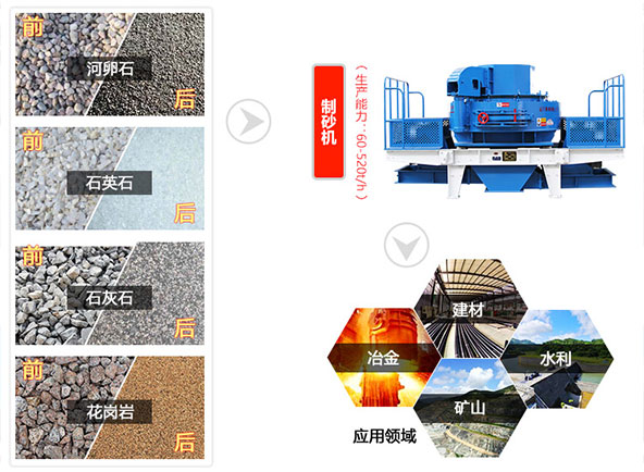 3、VSI立軸細(xì)碎機(jī)設(shè)備:經(jīng)過處理能力大,價(jià)格適中,產(chǎn)能:60-520噸/時(shí)。
