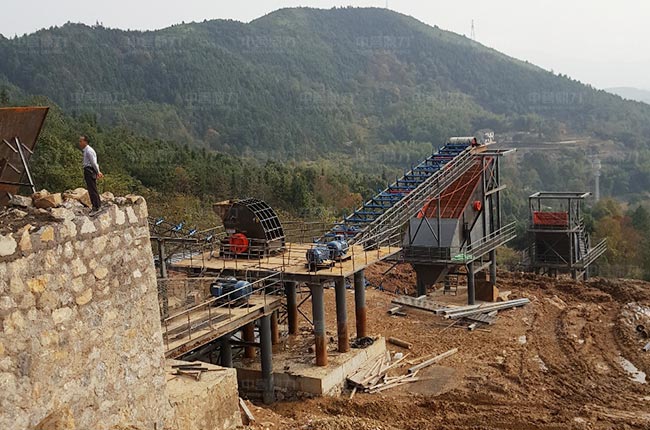 湖南華泰礦業(yè)時產300噸石灰石破碎生產線2018年投產,采用一次成型的方案,主要設備的配置有DLZG1238振動喂料機、DLPCZ1512重型錘式反擊破碎機、DLPC0910錘式整形機、DL2YK2470振動篩2臺。
