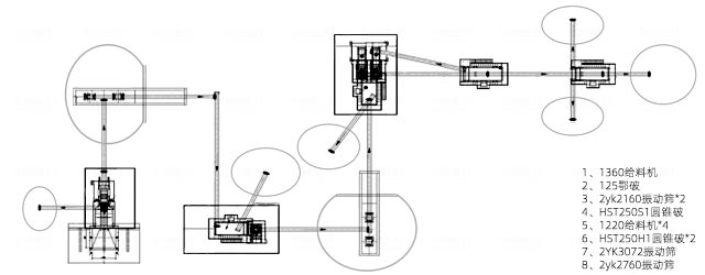配置方案HD125顎式破碎機(jī)+GYS500圓錐破碎機(jī)+2465振動(dòng)篩+2165振動(dòng)篩+相關(guān)配套SC315S單缸圓錐破碎機(jī)+HP300多缸圓錐破+PF-1520反擊破+3YK2866振動(dòng)篩+2YK2866振動(dòng)篩+配套臥式旋回破+中碎圓錐+沖擊式破碎機(jī)