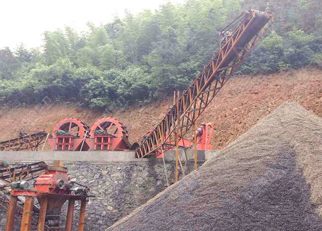 2、小型水輪洗砂設(shè)備在動工中采納的是流動水作業(yè),整個生產(chǎn)中粉末少、行業(yè)噪聲也相比;