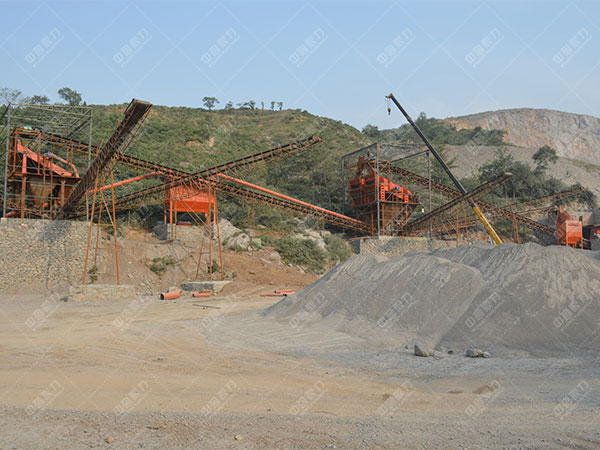 原料堆內(nèi)的巖石在振動(dòng)喂料機(jī)的影響下,被均勻、持續(xù)的送入圓錐碎石機(jī)進(jìn)行破碎解決,經(jīng)破碎后的巖石由運(yùn)輸機(jī)運(yùn)輸?shù)剿樯皺C(jī)進(jìn)行制砂生產(chǎn)解決,制砂后的巖石進(jìn)入篩機(jī)進(jìn)行篩選分級(jí),合格的則進(jìn)入洗砂機(jī)進(jìn)行清洗解決,不合格的返回碎砂機(jī)進(jìn)行又一次制砂生產(chǎn),洗沙后的巖石在運(yùn)輸機(jī)的影響下輸出即為成品。